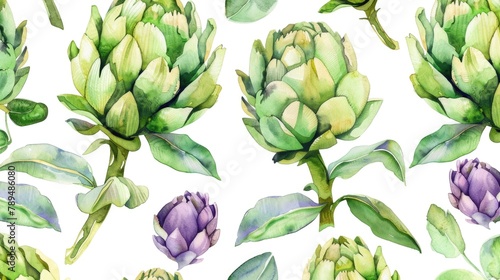 Fototapeta premium Watercolor painting of artichokes on white background. Suitable for kitchen decor