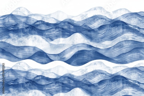 Fototapeta premium Watercolor painting of gentle waves in shades of blue and white, suitable for decorative purposes or as an element of interior design