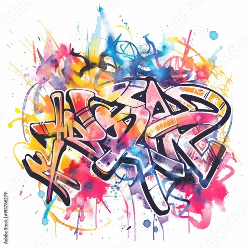 © kiyut, Naklejka premium Watercolor painting of graffiti featuring dynamic lettering, on isolated white background