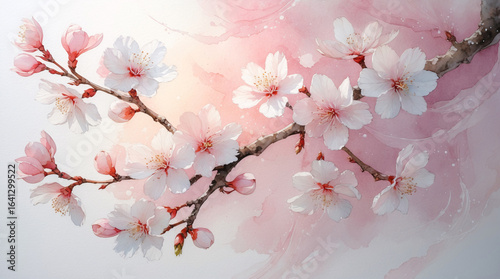 Fototapeta premium watercolor painting of pink cherry blossom petals blooming gently with pastel...
