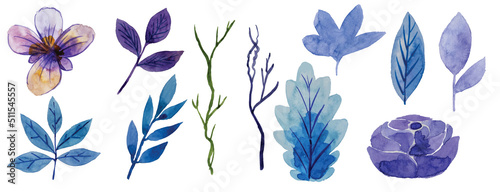 Obraz premium Watercolor painting of purple flowers and purple leaves in nature,watercolor...