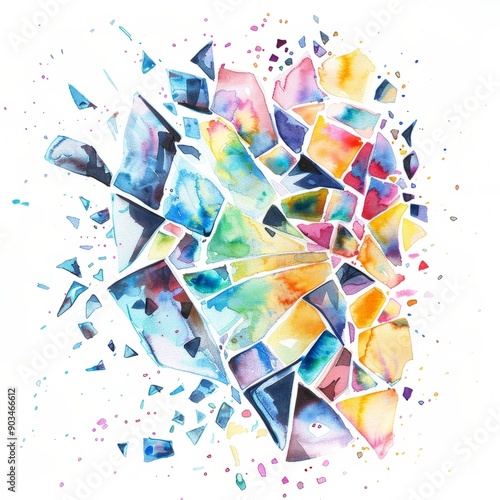Fototapeta premium Watercolor painting of shattered glass creating a prism effect, on isolated...