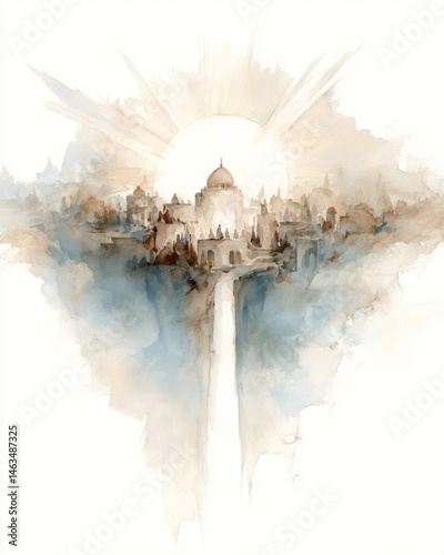 © Bargais, Obraz premium Watercolor painting of the New Jerusalem.