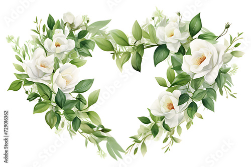 © LADIE_PASTEL, Fototapeta premium watercolor painting realistic love wreath of pink rose branches and leaves on white background. Clipping path included.