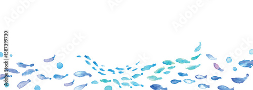 © necomammma, Fototapeta premium 水彩画。水彩タッチの海の生き物フレーム。夏の生き物ベクターイラスト。海。バカンス。水中フレーム背景。Watercolor painting. Watercolor sea creatures frame. Summer creatures vector illustration. Ocean. Vacation. Underwater frame background.