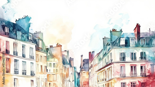 Fototapeta premium Watercolor paintings of Parisian buildings with beautiful pastel colors