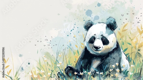 Fototapeta premium Watercolor Panda in the Grass