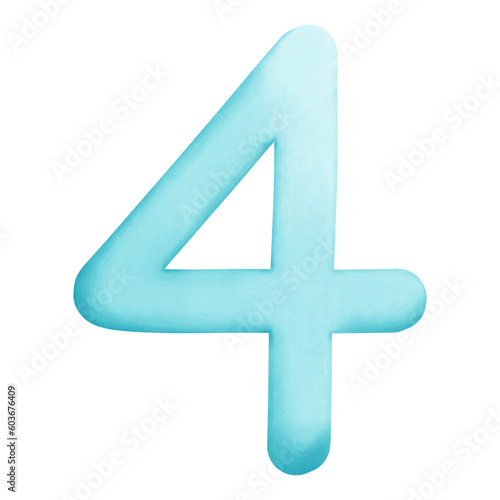 Obraz premium Watercolor Pastel Blue Number 4 Illustration Isolated on Transparent Background