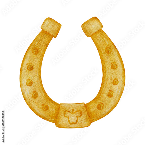 Fototapeta premium Watercolor Patrick's Day golden lucky horseshoe. hand drawn illustration....