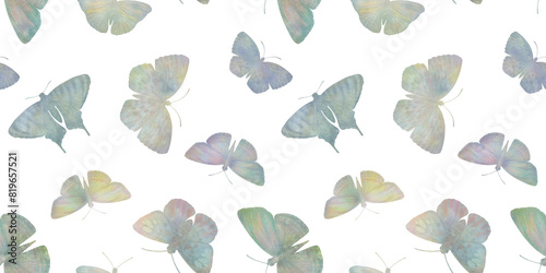 Fototapeta premium watercolor pattern of flying butterflies, for wallpaper, wrapping paper and packaging, seamless pattern, abstract background for design