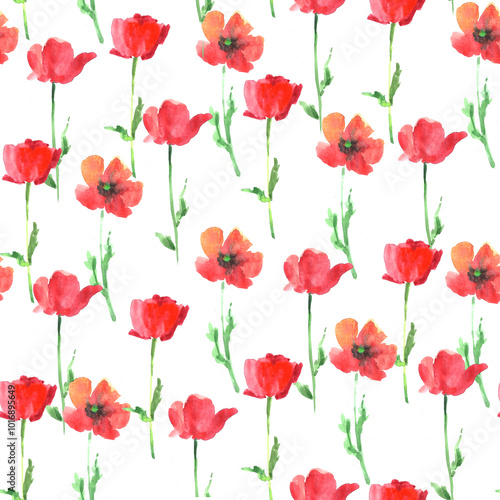 Fototapeta premium Watercolor pattern with poppies