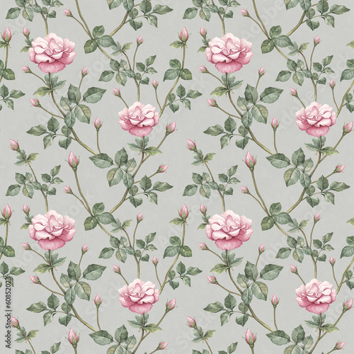 © Aleksandra Smirnova, Obraz premium Watercolor pattern with rose illustration