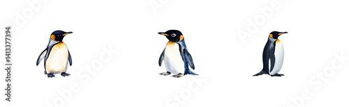 Naklejka premium Watercolor Penguins Illustration: Cute Antarctic Birds Isolated, cut out...