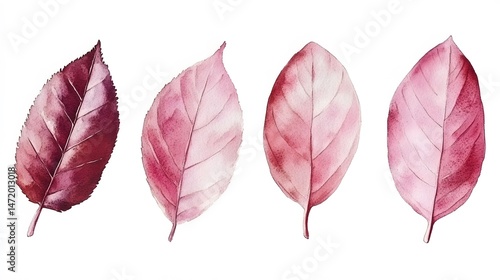 Obraz premium Watercolor Pink and Burgundy Autumn Leaves Collection