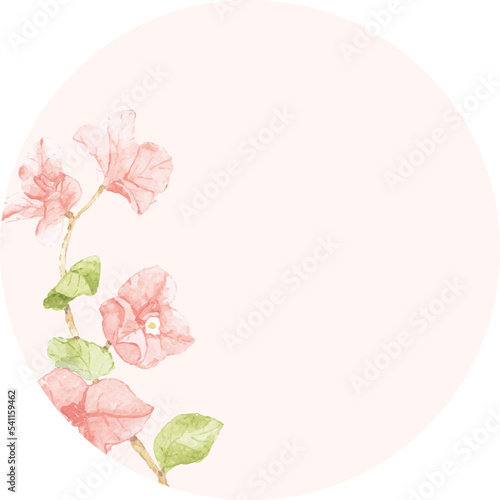 Fototapeta premium watercolor pink bougainvillea round wreath frame sticker