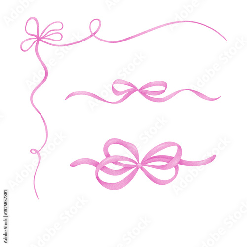 Fototapeta premium Watercolor pink bows set, ribbon silk, illustration for design and print.