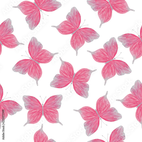 Obraz premium Watercolor pink butterfly seamless pattern hand drawn