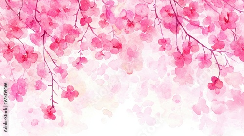 Fototapeta premium Watercolor Pink Cherry Blossom Flowers Spring Floral Background
