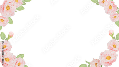 Fototapeta premium watercolor pink rose flower bouquet wreath frame