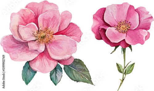 Obraz premium Watercolor Pink Rose Flower Clipart
