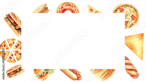 Naklejka premium Watercolor pizza frame isolated on white background. Hand drawn food illustration.