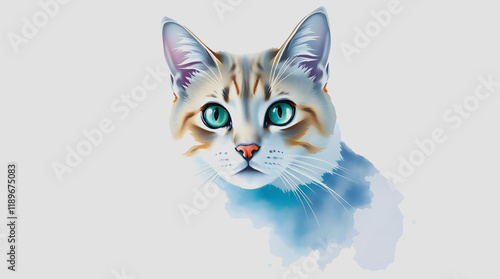 Fototapeta premium Watercolor portrait of a cat with blue eyes on a white background