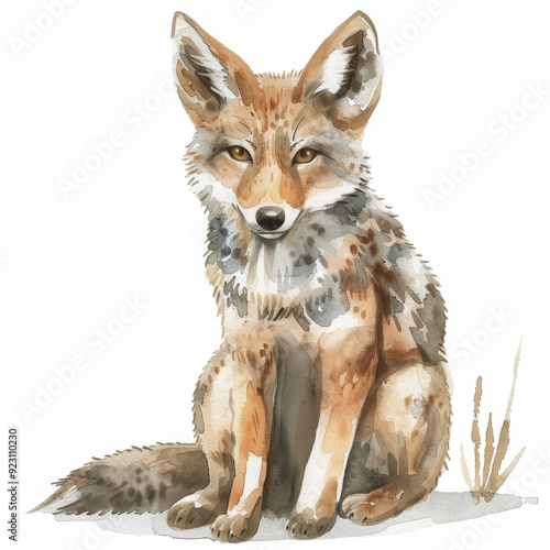 Fototapeta premium Watercolor Portrait of a Cute Fox with Detailed Fur and Gradient Background