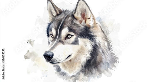 Obraz premium Watercolor portrait of a Siberian Husky dog illustrated and isolated on a...