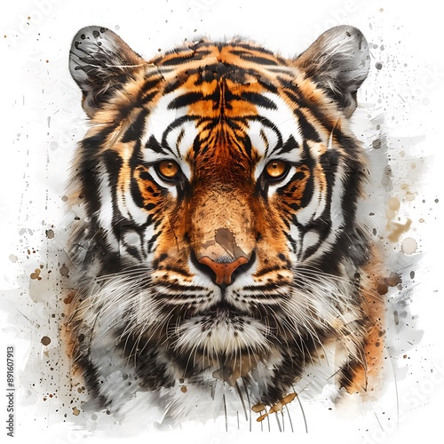 Fototapeta premium Watercolor Portrait of a Tiger with Intense Eyes.