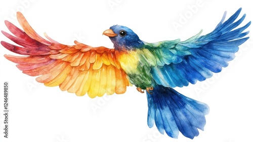 © Almahyra, Fototapeta premium Watercolor rainbow bird in flight.