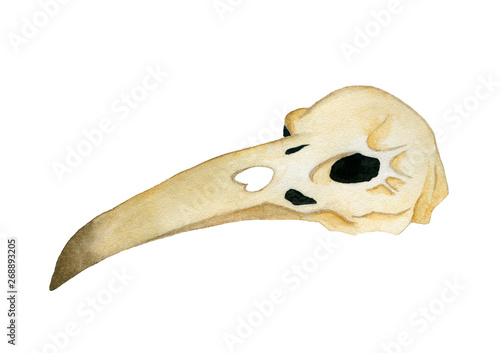 © Rina Grinchik, Naklejka premium Watercolor raven skull. Isolated illustration on white background.