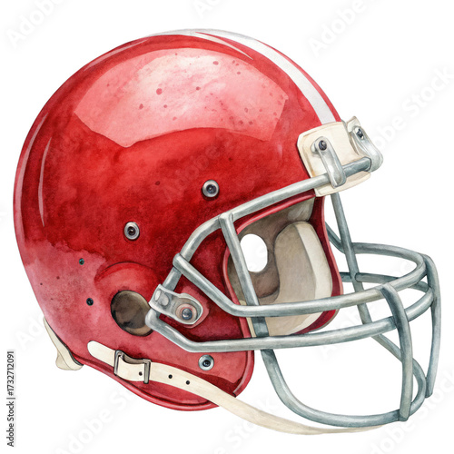 © MSTSAKHINA, Fototapeta premium Watercolor Red Football Helmet Isolated on Black