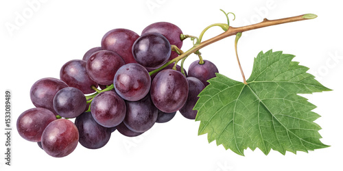 Obraz premium Watercolor Red Grapes with Leaf, Isolated on Transparent Background, Botanical Illustration, Fruit, Vine, Grapes, Watercolor, Illustration