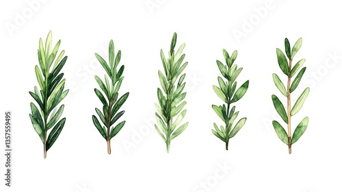 © berdoa, Fototapeta premium Watercolor rosemary sprigs collection.