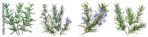 © BrilliantPixels, Fototapeta premium Watercolor Rosemary Sprigs with Flowers Isolated on White Background, PNG File