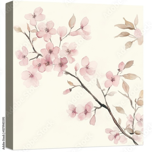 Naklejka premium Watercolor Sakura Blossom Tree Branch Illustration with Soft Pink Blooms