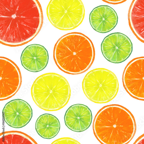 © Olga, Fototapeta premium Watercolor seamless citrus pattern