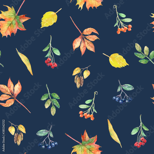 Fototapeta premium Watercolor seamless pattern with autumn elements.