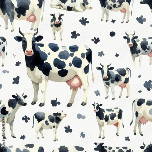 Obraz premium Watercolor seamless pattern with cow.
