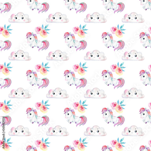 Obraz premium Watercolor Seamless Pattern with unicorns