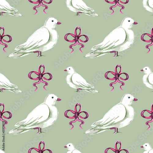 Obraz premium Watercolor seamless pattern with white doves