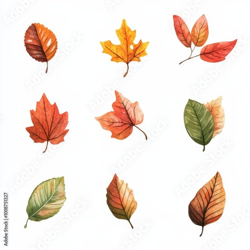 Obraz premium Watercolor set of autumn leaves, great for any purpose and with a botanical...