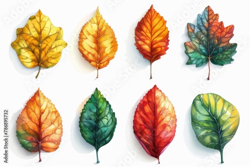 Obraz premium Watercolor set of colorful autumn leaves on a white background