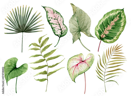 © Lana, Fototapeta premium watercolor set of green plants and leaves, hand painted