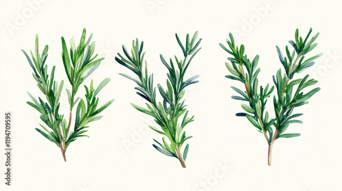 Obraz premium Watercolor set of green rosemary sprigs isolated on white background