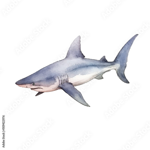 © yuniazizah, Obraz premium watercolor Shark isolated white background