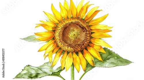 Fototapeta premium Watercolor sketch of a sunflower reaching towards the sun with its golden petals and rich brown center
