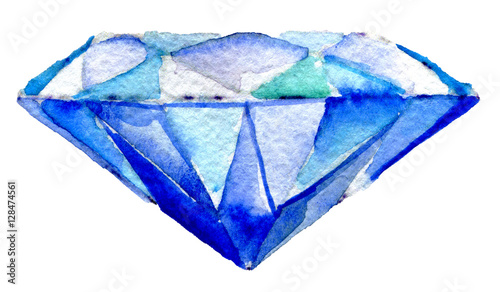 © maltiase, Obraz premium watercolor sketch of shiny diamond on white background