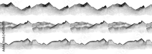 © Маргарита Шевчишена, Obraz premium Watercolor sketched mountains seamless pattern monochrome black background. illustration