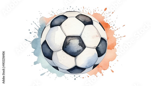 Fototapeta premium Watercolor Soccer Ball with Orange and Blue Splashes